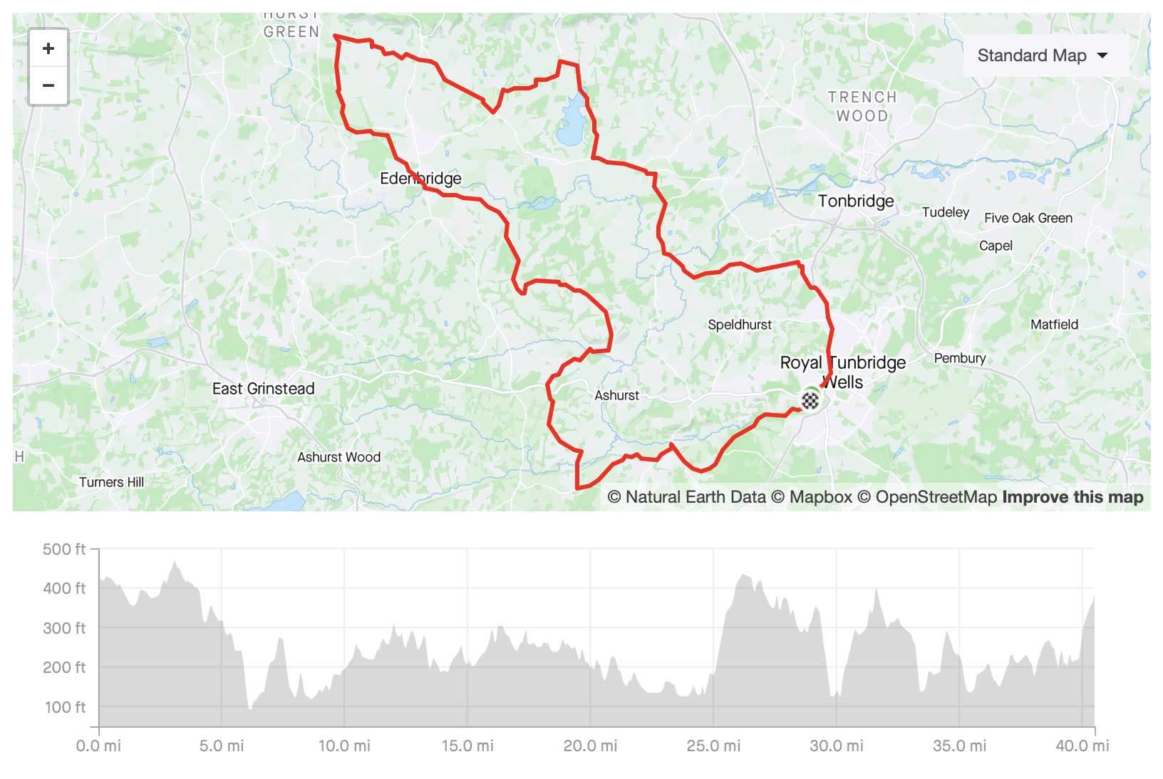 Tunbridge Wells - Bidborough –Penshurst – Chiddingstone Causeway – Four Elms – Edenbridge – Mark Beech – Groombridge – Tunbridge Wells