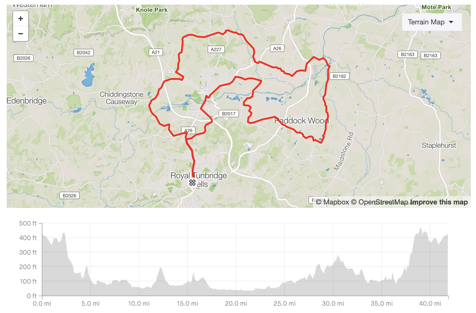 Tunbridge Wells - Tonbridge - Paddock Wood - Yalding - Hadlow - Shipbourne - Hildenborough - Leigh - Tunbridge Wells